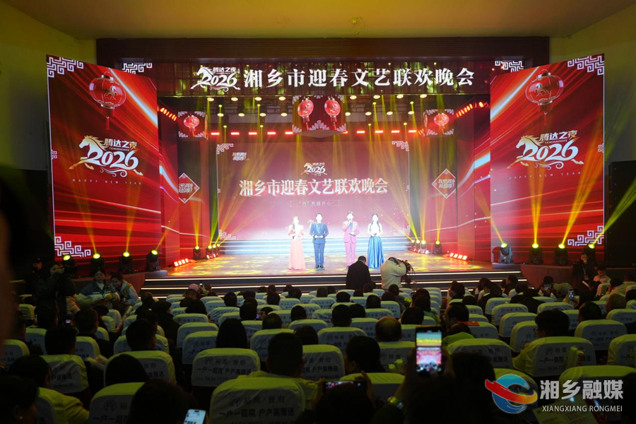 11日晚,我爱湘乡我的家“腾达之夜”2026年湘乡市迎春文艺联欢晚会在湘乡剧院精彩上演。湘潭市人大常委会副主任、湘乡市委书记赵新文,市委副书记、市长唐宁,市委副书记、政法委书记莫永恒,市人大常委会主任李文亮等市领导与各界群众欢聚一堂,共迎新春。