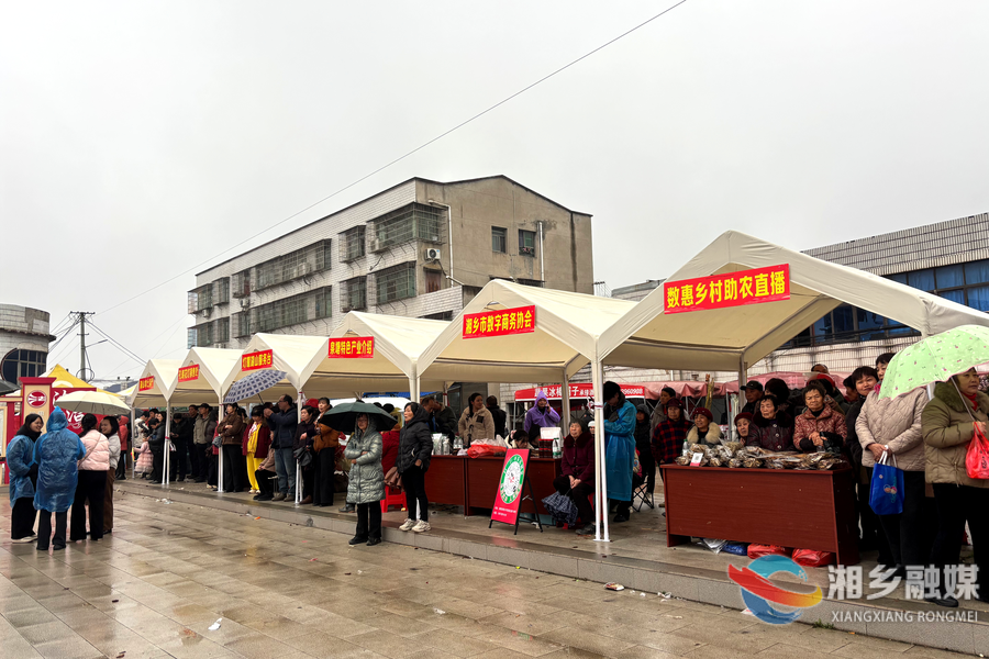 此外,活动现场还设立了数字助农市集,鱼干、腊味等农家土货琳琅满目,年味浓郁。湘乡市数字商务协会搭建多个直播展位,组织网络主播现场带货,通过线上线下联动销售模式,拓宽农产品销路,实现“以节促销、以销助农”。此次活动,既让传统民俗“火”出圈,也让乡村经济“活”起来。